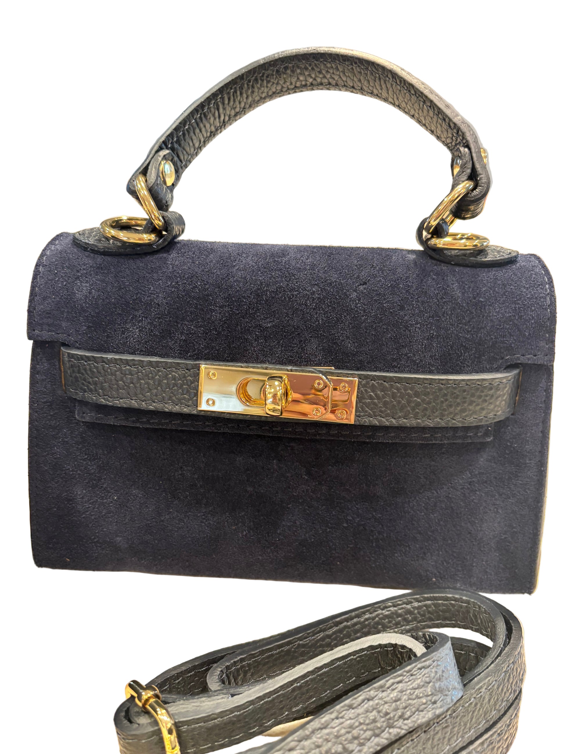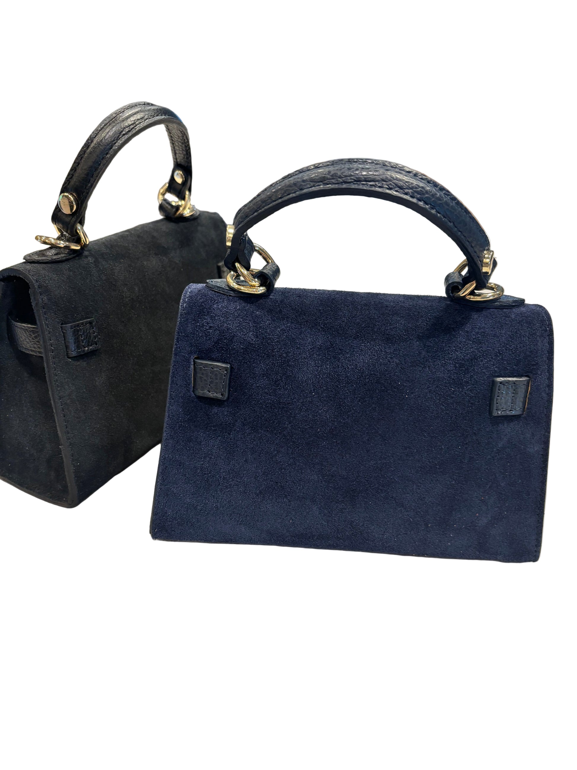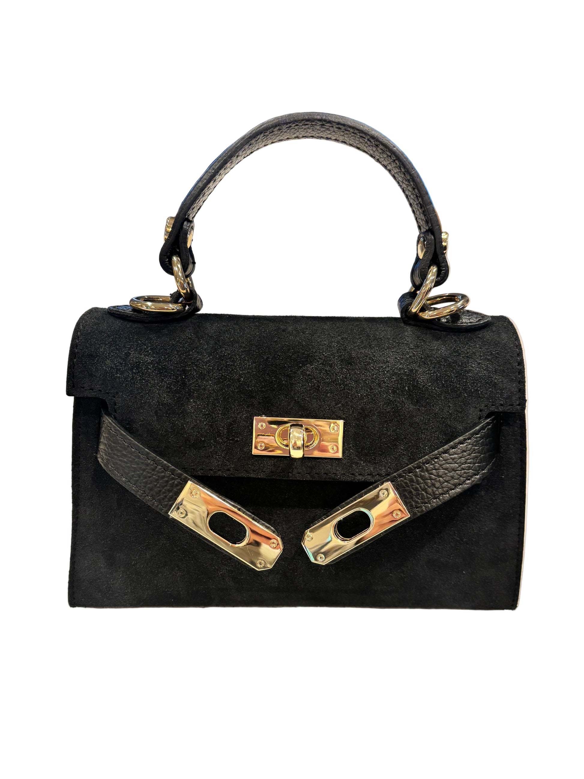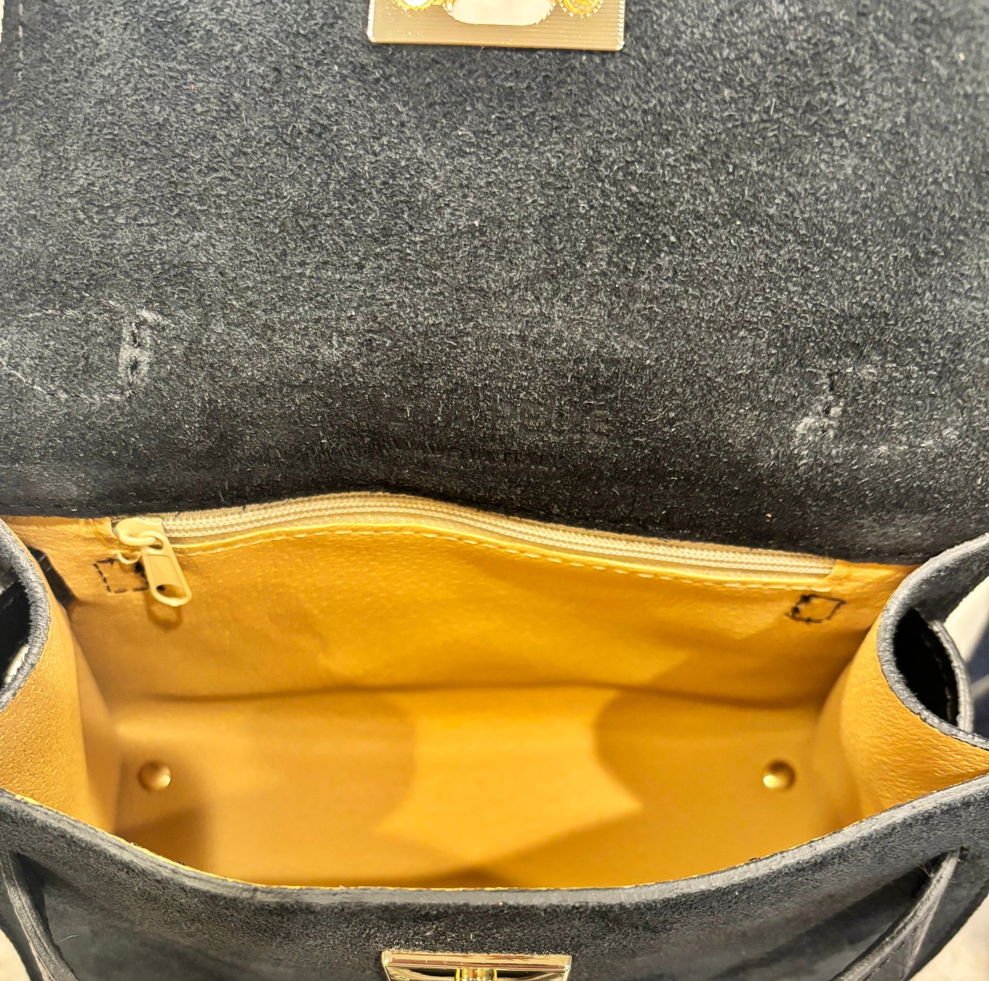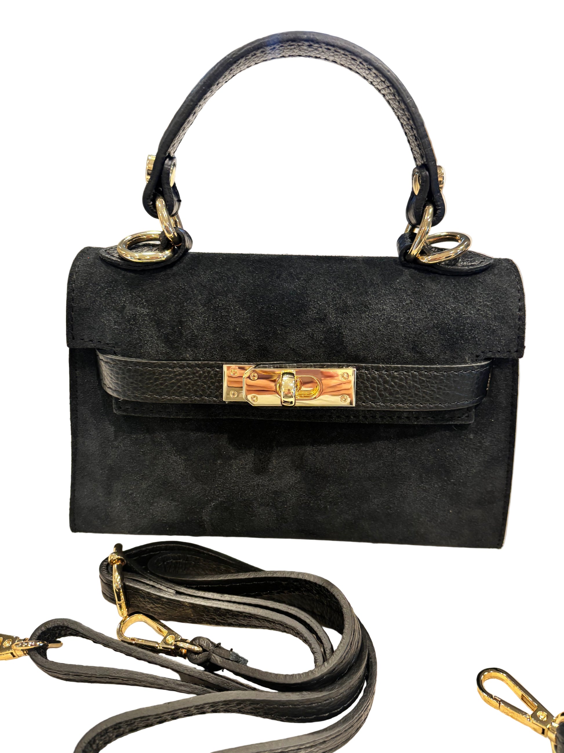 Meet Chloe—your new go-to bag that's equal parts chic and versatile. Crafted from luxe suede with a refined leather top handle, this beauty features gleaming gold hardware that catches the light just right. Slip on the adjustable crossbody strap for hands-free ease, or carry it by the handle for a polished look. Inside, a secure zipper keeps your essentials safe and sound. Whether you're running errands or heading out for the evening, Chloe's the perfect companion.