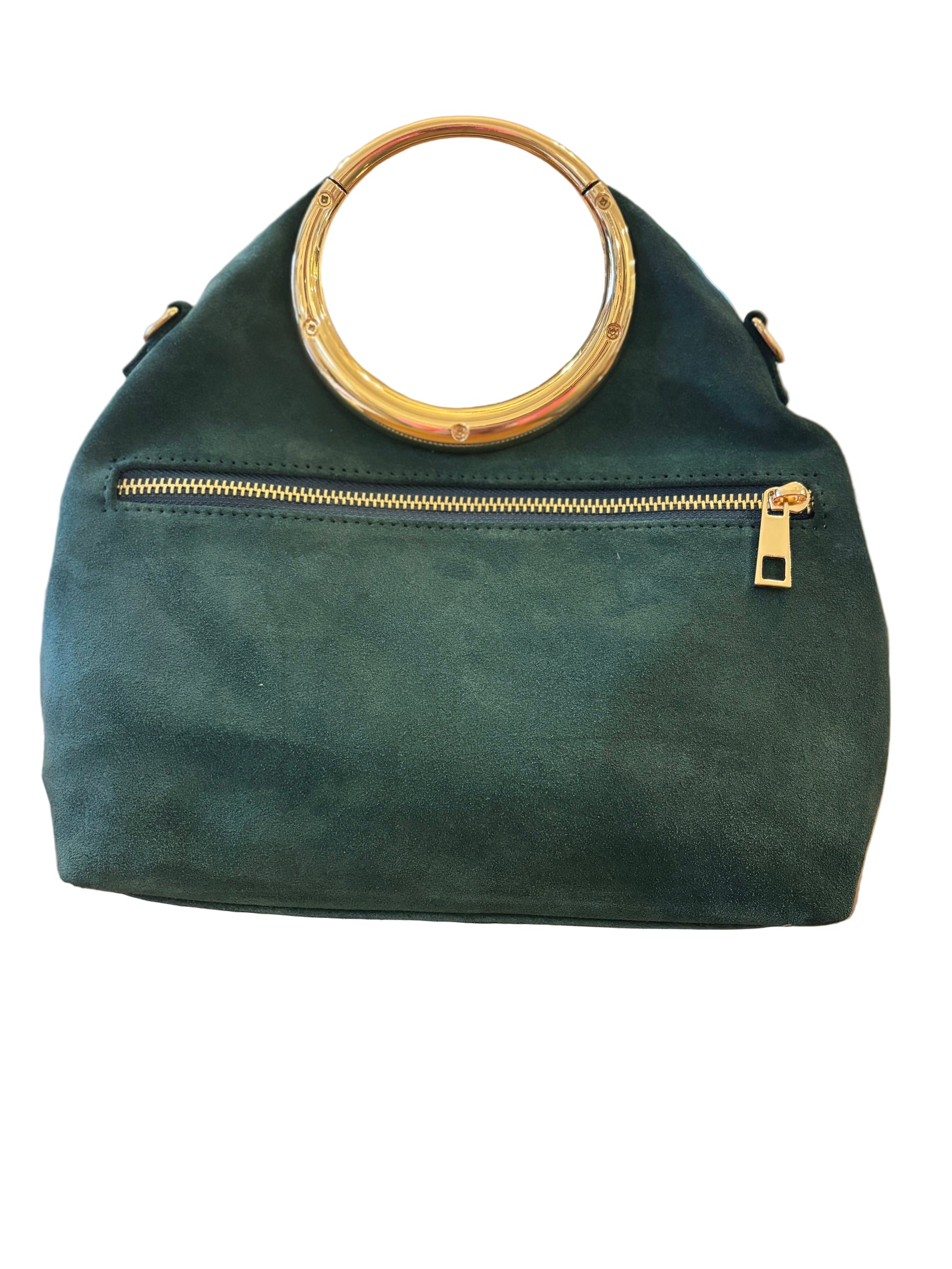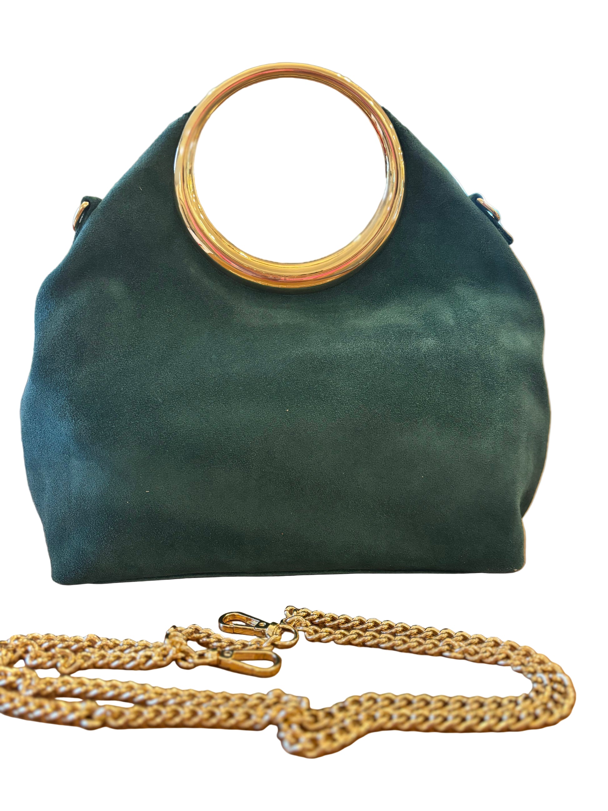 Make a statement with the Fawn bag, featuring bold leopard print on suede. Its striking gold round handle and removable gold crossbody chain let you switch effortlessly between edgy clutch and hands-free style. Secure your essentials with the zipper closure & inside zipper pocket while the fold-over design keeps your look daring and versatile wherever you go.