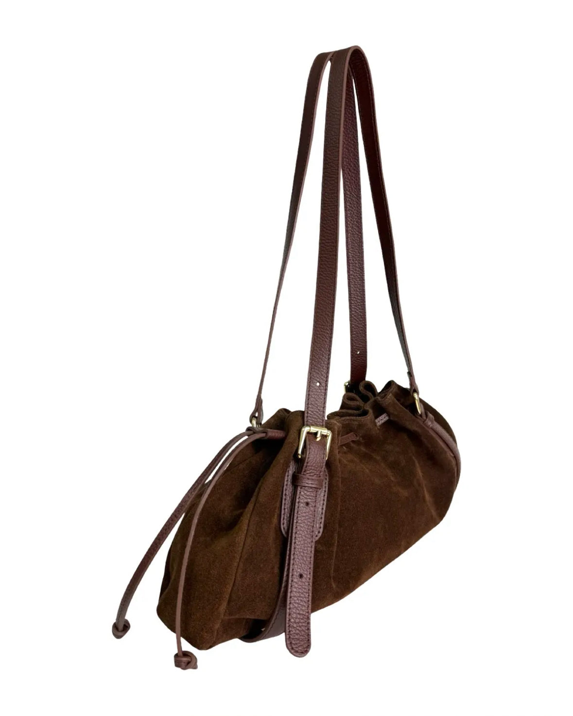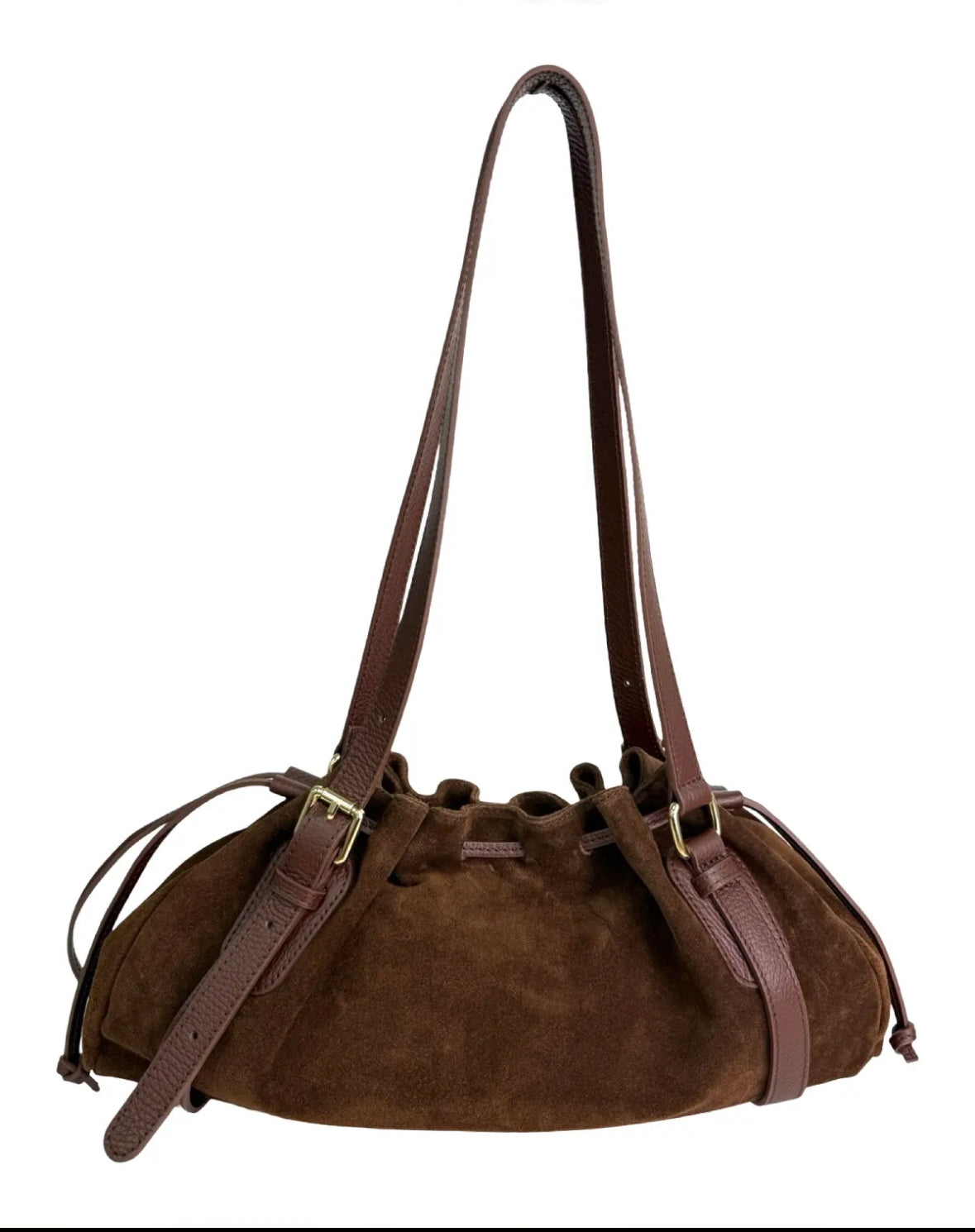 Get ready to fall in love with Lyla, your new favorite brown suede companion! With playful leather straps and a drawstring closure, it keeps your essentials safe while adding a dash of charm. The adjustable buckle straps make comfort and style a perfect match for any adventure.