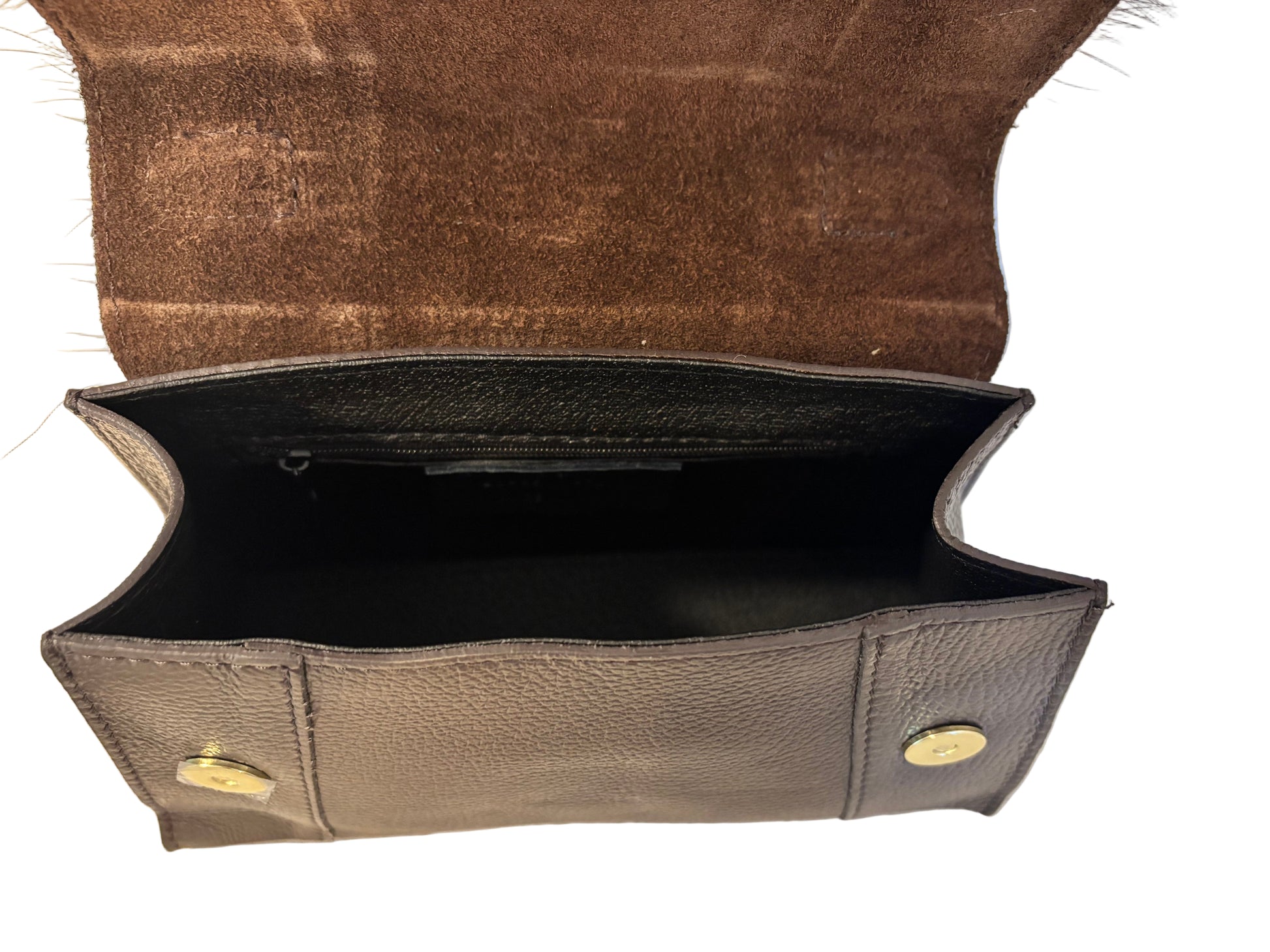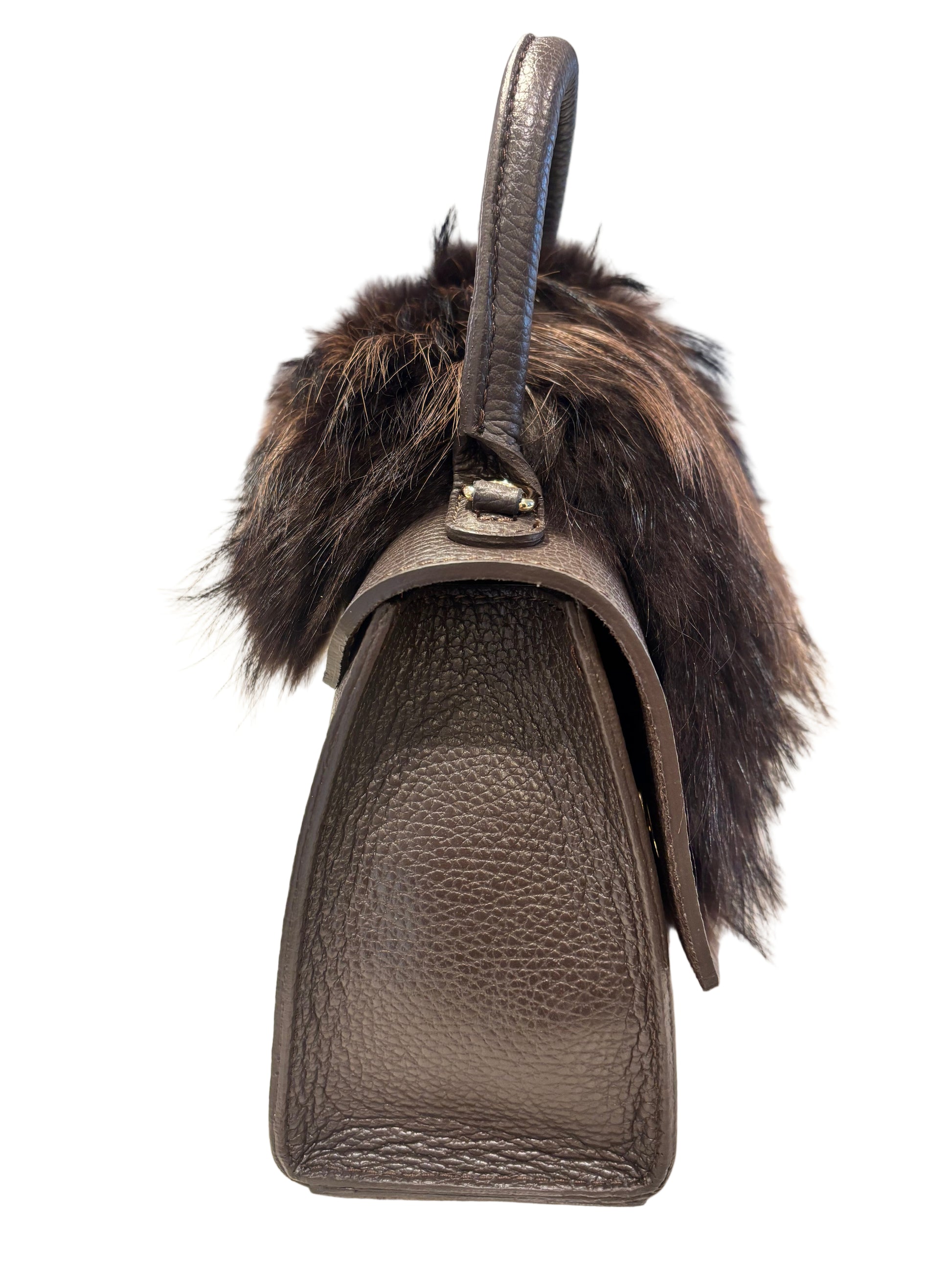 Indulge in luxury with Tatiana, the must-have dark chocolate leather bag with a chic fur detail. Its top handle and removable shoulder strap provide versatility while the inside zipper ensures organization. Upgrade your style and stand out from the crowd with Tatiana.